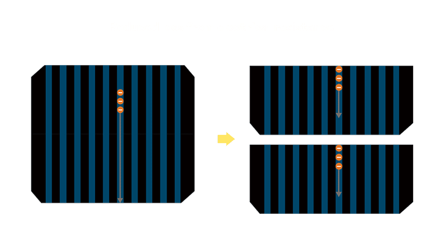 • 多条电极栅结构,,可有效降低外力对于电池的影响,,,限制电池隐裂 (Micro-cracks) 范围,,防止电流传输路径 (Current distribution) 之损坏进一步扩大。。