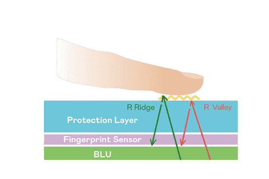 TFT 指纹扫描感测技术利用薄膜电晶体 (TFT) 当作光感测元件,,,,藉由非晶硅 (a-Si) 与低温多晶硅(LTPS)既有光电转换特性对不同波段光源进行吸收,,使感测 IC 读取阵列感测元件的光漏电差异,,,转换成数位灰阶影像。。。。
